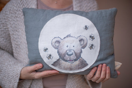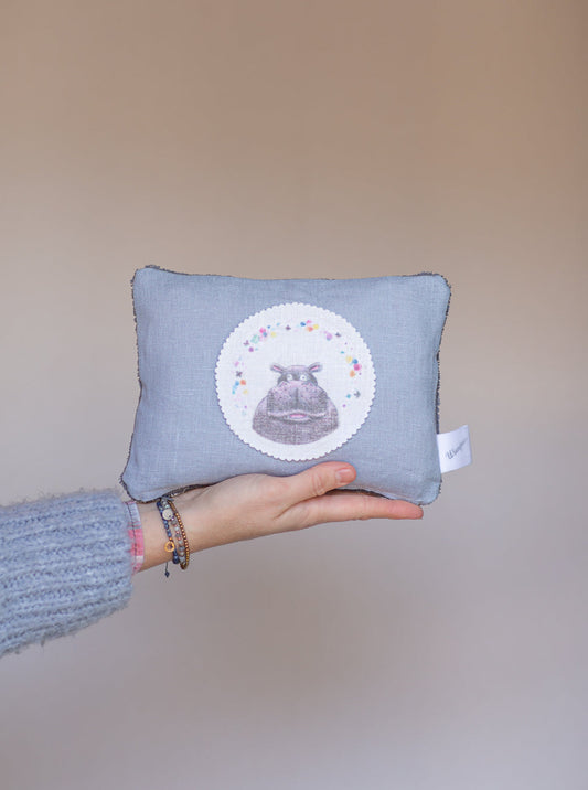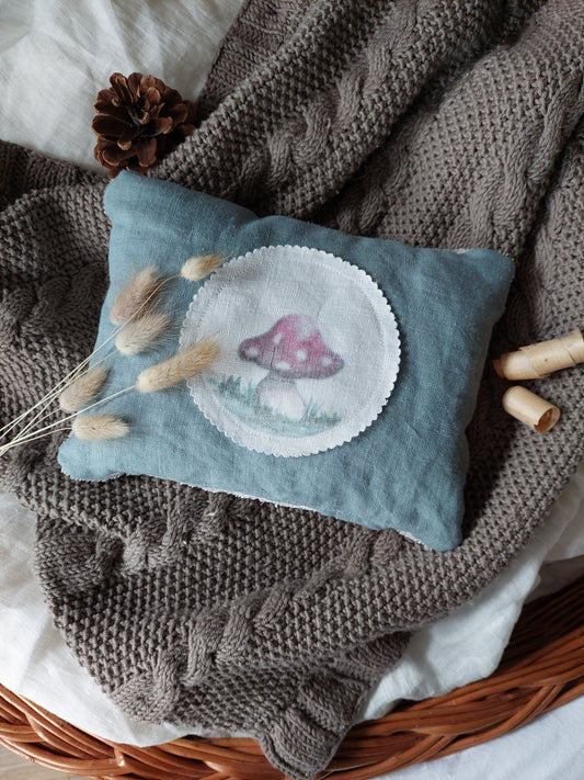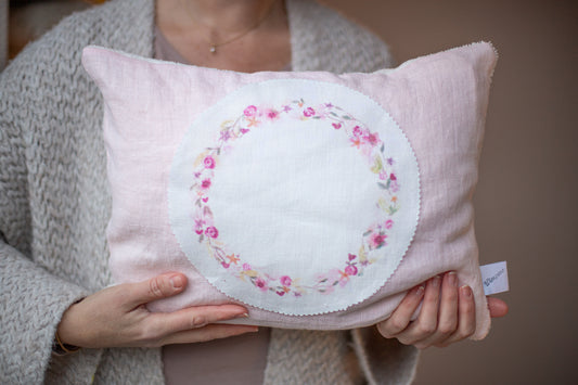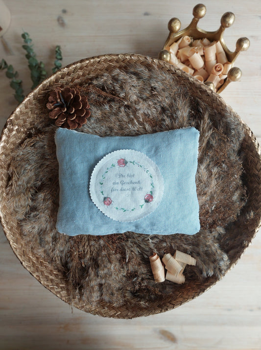 Wimpees Zirbenkissen mit Motiv aus Bio Leinen gibt es wahlweise in 2 verschieden Größen und wunderschönen Pastell-Tönen.