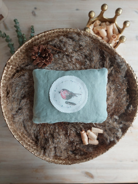 Zirbenkissen mit Motiv | 'Rotkehlchen'